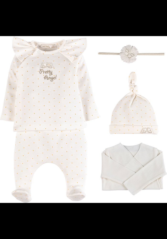 Yenidoğan bebek kıyafet alışverişinin olmazsa olmazlarından biri haline gelen takımlardan biri de yenidoğan kız bebek hastane çıkış takımları. Doğum sonrasında bebeğin ihtiyacı olan kıyafetlerin yer aldığı takımlara yenidoğan hastane çıkışı takımı adı verilmektedir. Hastanede geçirilecek günler için hazırlanan doğum çantasında mutlaka en az iki takım hastane çıkışı yer almalıdır. Birbirinden sevimli desenler ve renkler ile tasarlanmış yenidoğan kız bebek hastane çıkışı takımları içerisinde bebeğin doğduğu anda ve sonrasında ihtiyacı olabilecek bütün kıyafetler düşünülmüştür. Hastane çıkış takımı içerisinde iç ve dış zıbın, çıtçıtlı uzun kollu veya kısa kollu badi, patikli alt giyim, penye hırka ve yelek, eldiven, bere hatta battaniye dahil bulunabilmektedir. Hatta bazı yenidoğan kız bebek hastane çıkış takımları içerisinde ağız mendilinin yanı sıra kız çocukları için sevimli aksesuarlar da bulunmaktadır. Yenidoğan kız bebek hastane çıkışı takımları farklı ihtiyaçlara göre 3’lü ya da 8’li olarak da satılabilmektedir.